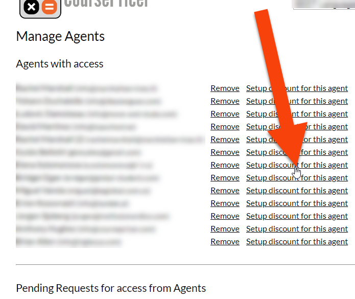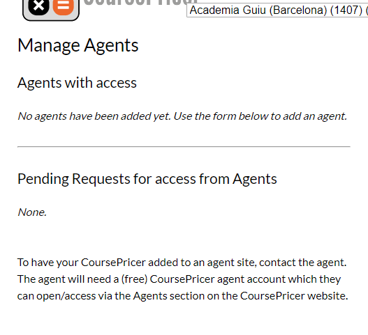 Schools have their own agent management utilities in CoursePricer. This is where they log in to approve and link up with an agent who approaches them, and where they can assign special discounts to individual agents.